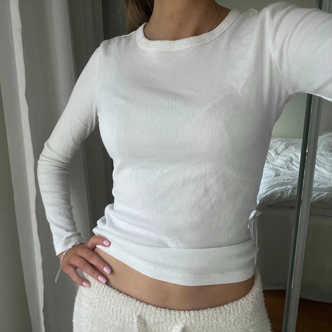 Vit ribbad långärmad tröja! Jätteskön❣️❣️❣️❣️❣️
