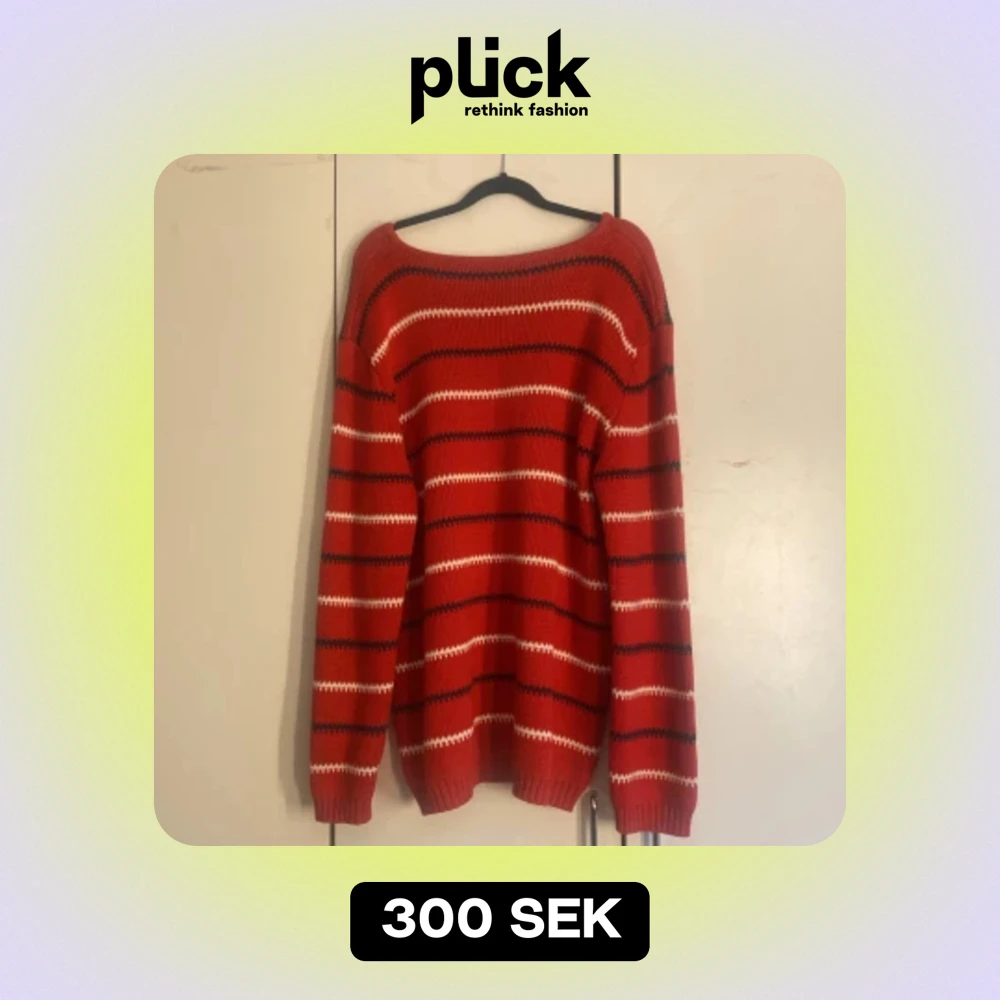 En stickad tröja som är röd, vit och svart, perfekt nu när det börjar bli kallare tider igen ❤️
