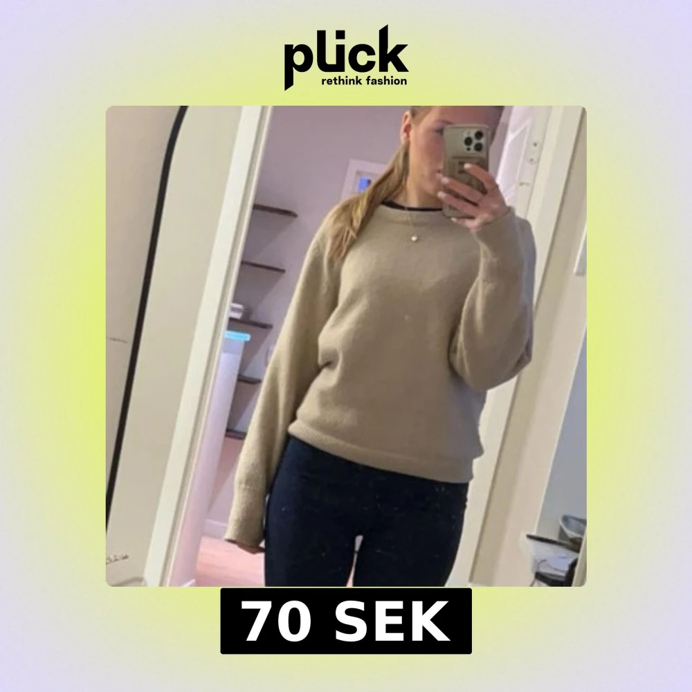 Mysig beige stickad tröja med rund halsringning och långa ärmar.🍂🍁