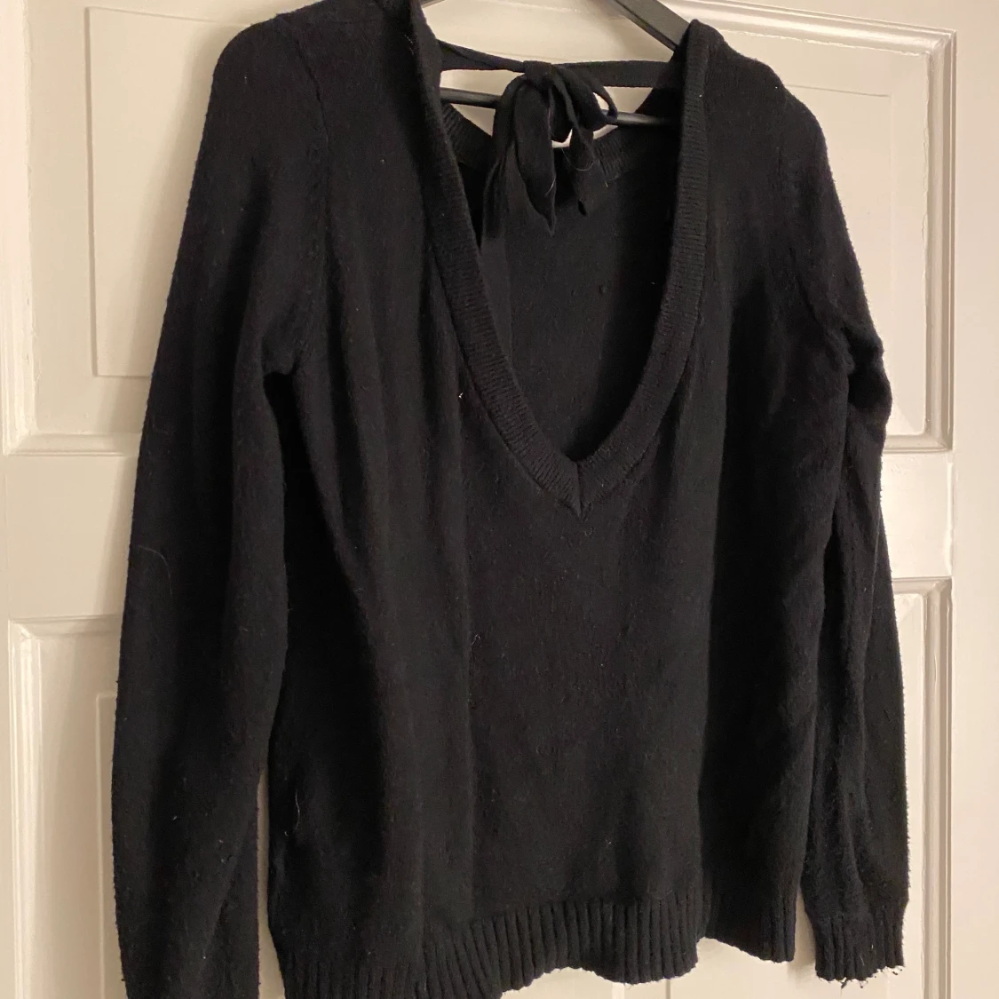 Svart stickad tröja med ”hål” i ryggen. Väldigt skönt material, frakt tillkommer🖤