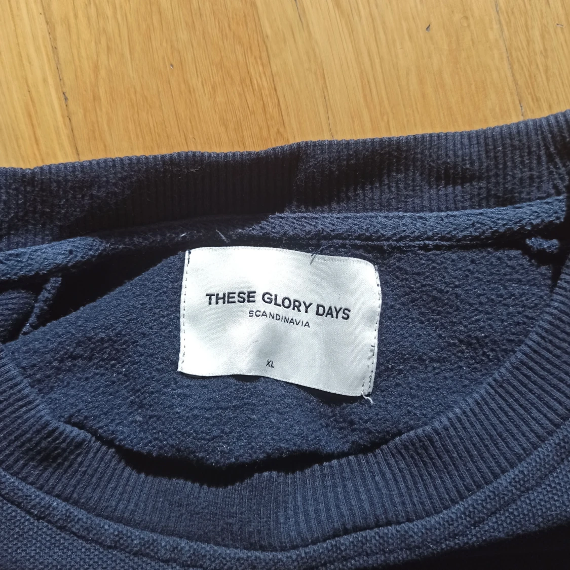En stilren mörkblå sweatshirt från These Glory Days i storlek XL. Tröjan har rund hals, ribbade muddar och är tillverkad i mjuk bomull. Perfekt för en chill och avslappnad look. Passar dig som gillar enkel och klassisk stil. M!