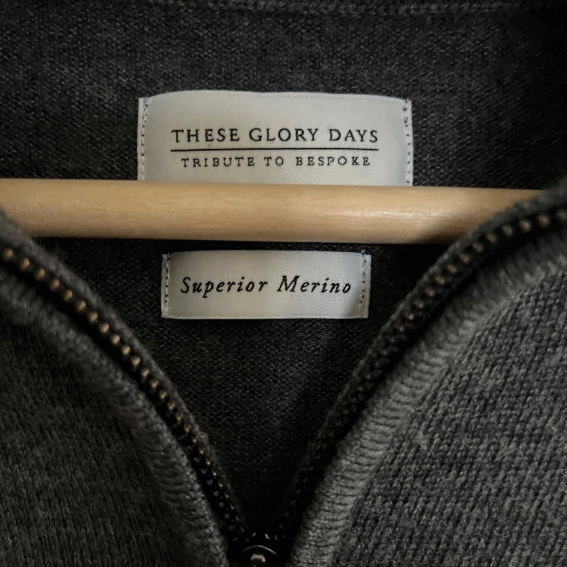 Säljer en stilren grå tröja i merinoull från These Glory Days. Storleken är M och tröjan är i mycket bra skick
