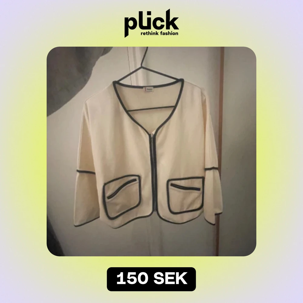 Jätte fin vit kofta med svarta detaljer. Står ingen storlek på lappen men skulle säga att den är i xs-s💓