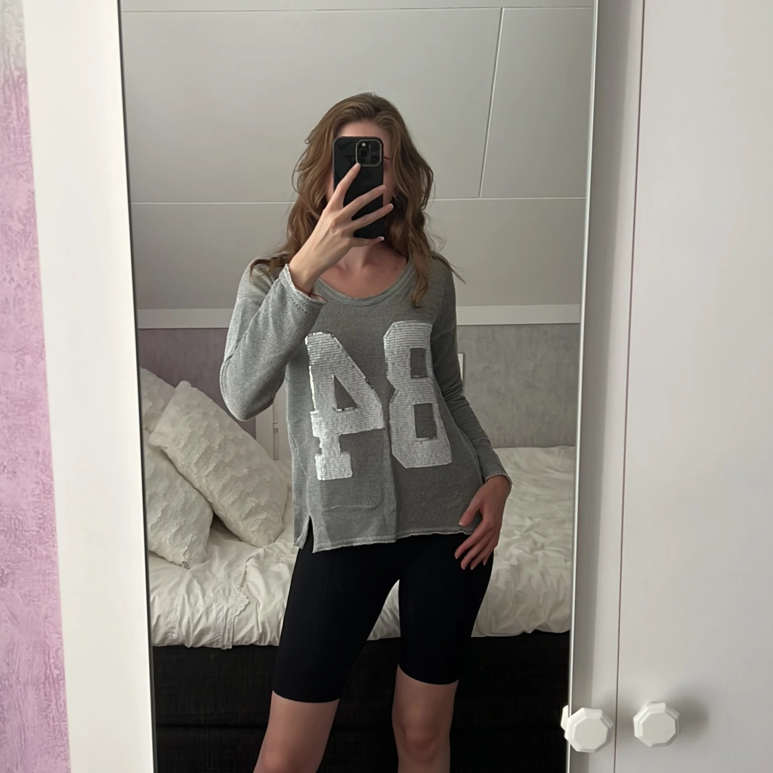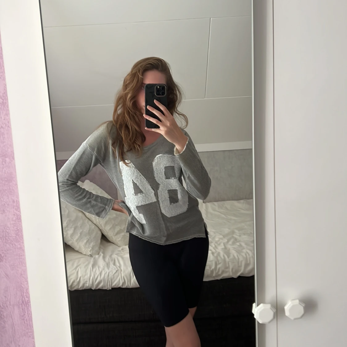 Passform: Over-sized. Detaljer: Nummer 84 sydd med vita paljetter. Skick: Bra.