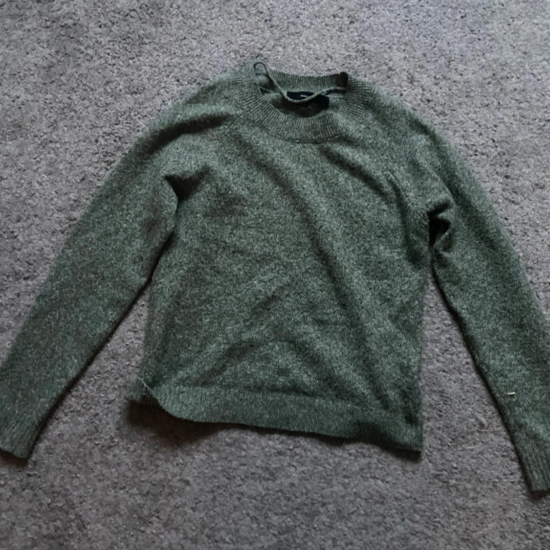 Säljer en grön stickad tröja från vero moda då den inte kommer till användning! Endast använd fåtal gånger och perfekt för våren!