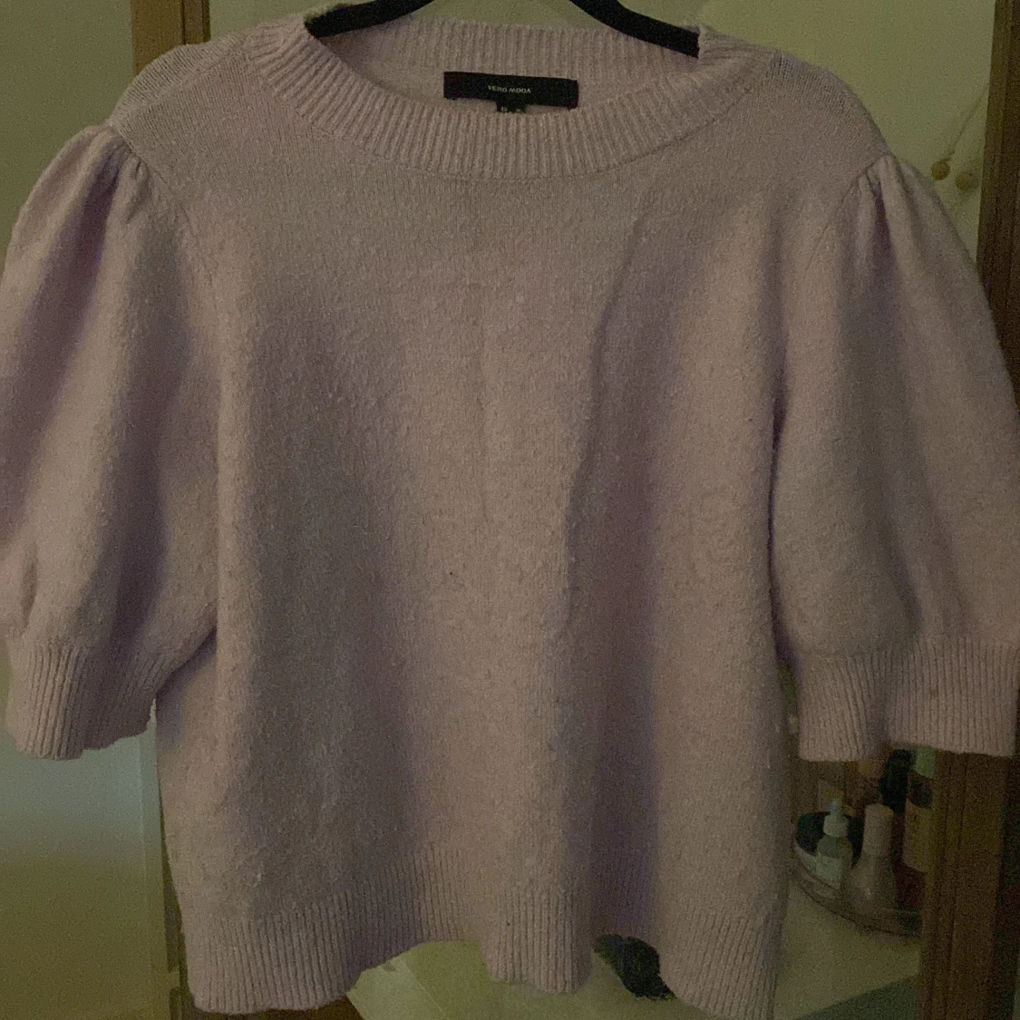 Superfin ljuslila stickad tröja från Vero Moda med puffiga halvlånga ärmar och rund halsringning. Tröjan har en mjuk och mysig känsla, perfekt för dig som gillar en söt och trendig look. Passar snyggt till både jeans och kjol.
