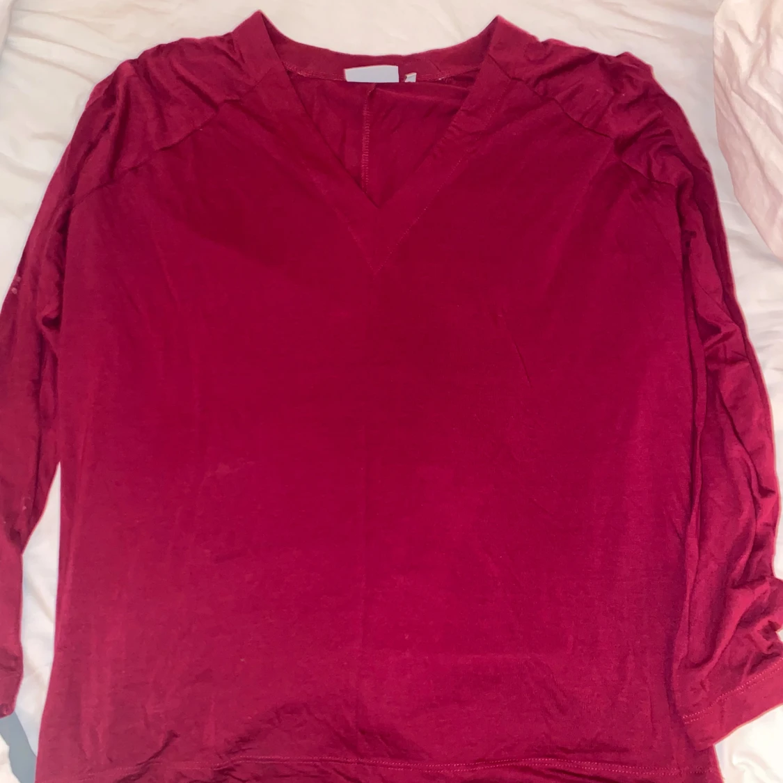 En jättefin och skön långärmad tröja i ett skönt material. Är ganska tunt vilket gör att den kan användas både under sommaren och vintern. Går att klä upp men även användas till vardag och är knappt använd