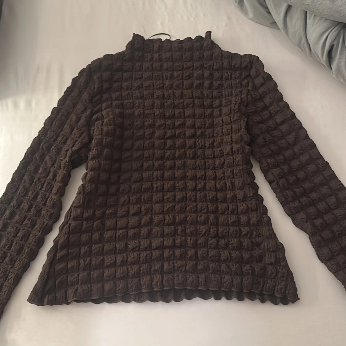 Säljer en brun långärmad tröja från Wera i storlek S. Aldrig använd