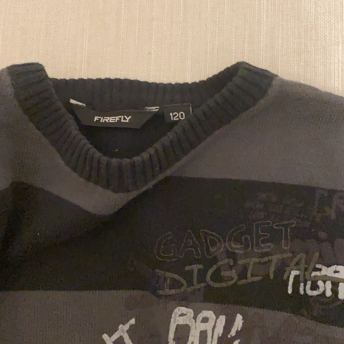 Fire fly tröja barnstorleken 120. Sitter jättenajs på mig som är en dam xs. förutom att ärmarna är något För korta.
