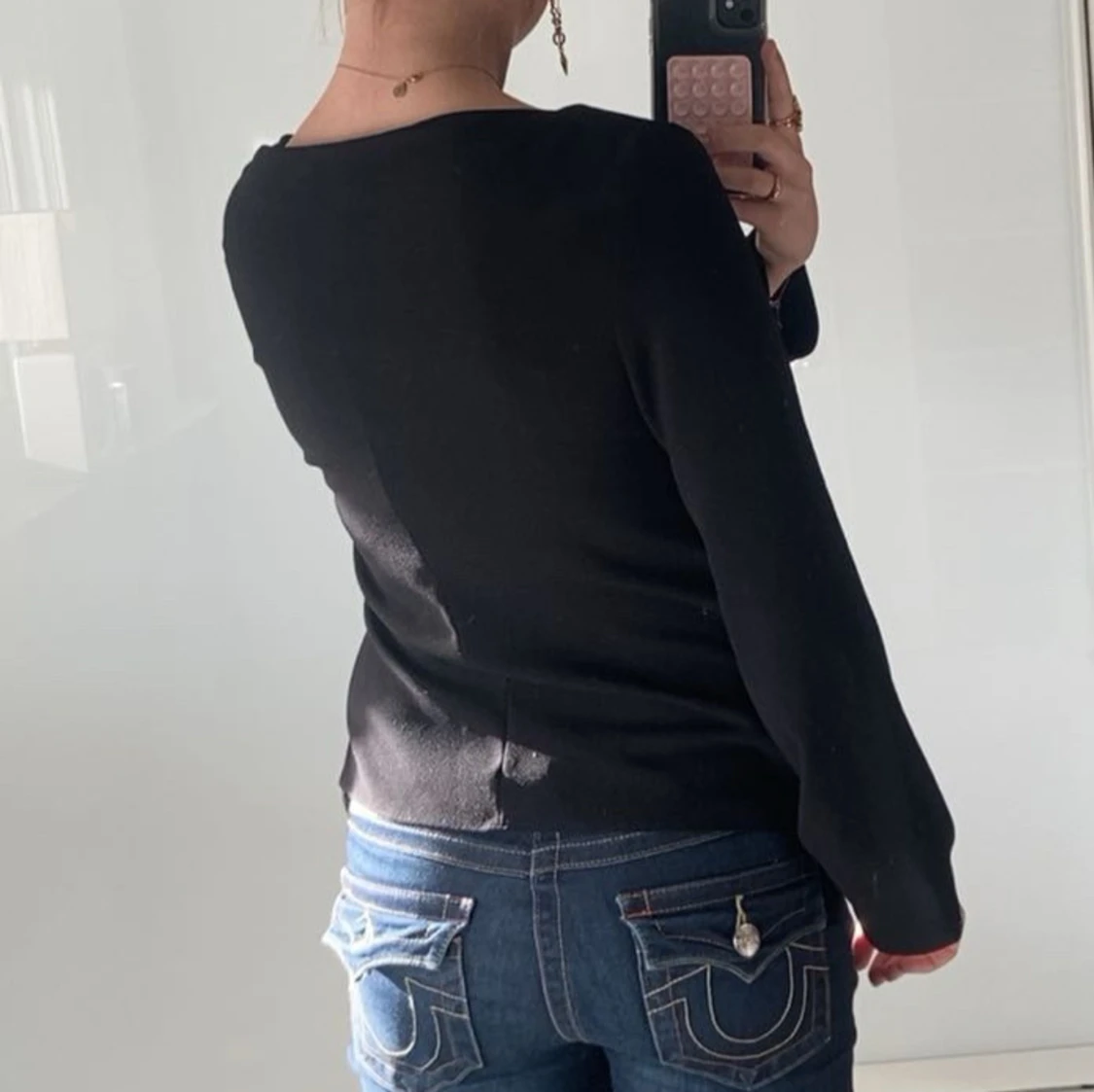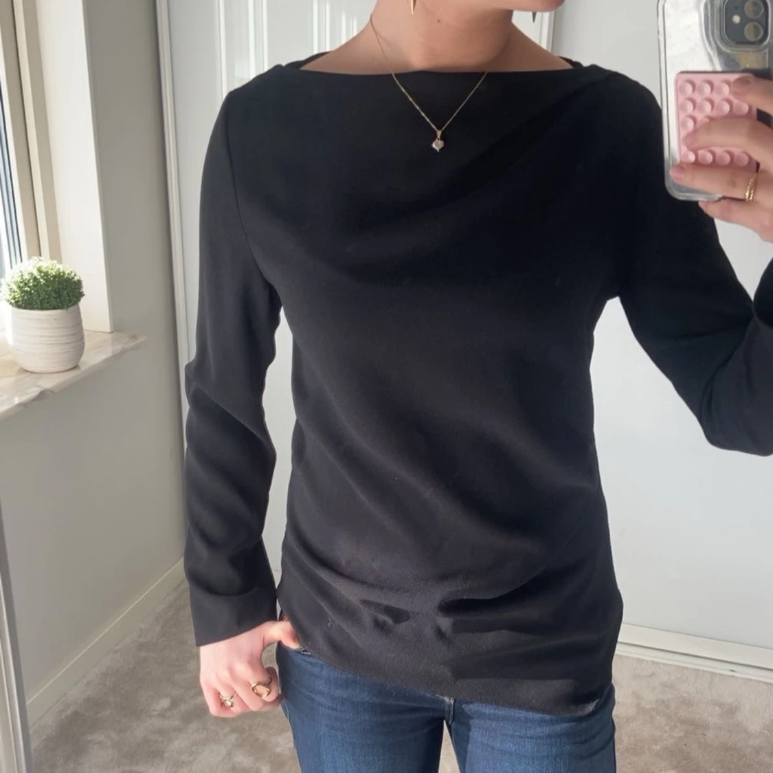 Säljer en super fin svart långärmad topp från Zara! Den är endast använd 1 gång och är som ny! Den är i stl M med sitter som en S🌸