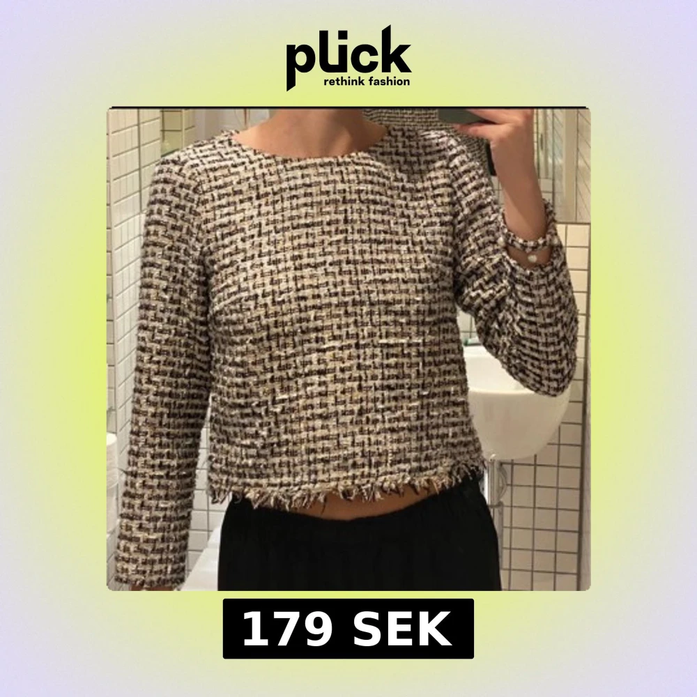 Säljer en jättefin topp med pärldetaljer vid ärmsluten från Zara! Lite kort i armarna och en pärla har lossnat, se sista bild🩷