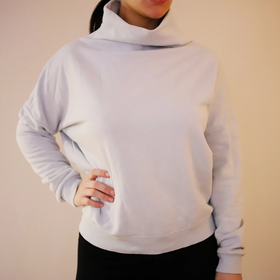 Ljusblå tröja med hög krage. Använd några gånger men den är i jättefint skick!