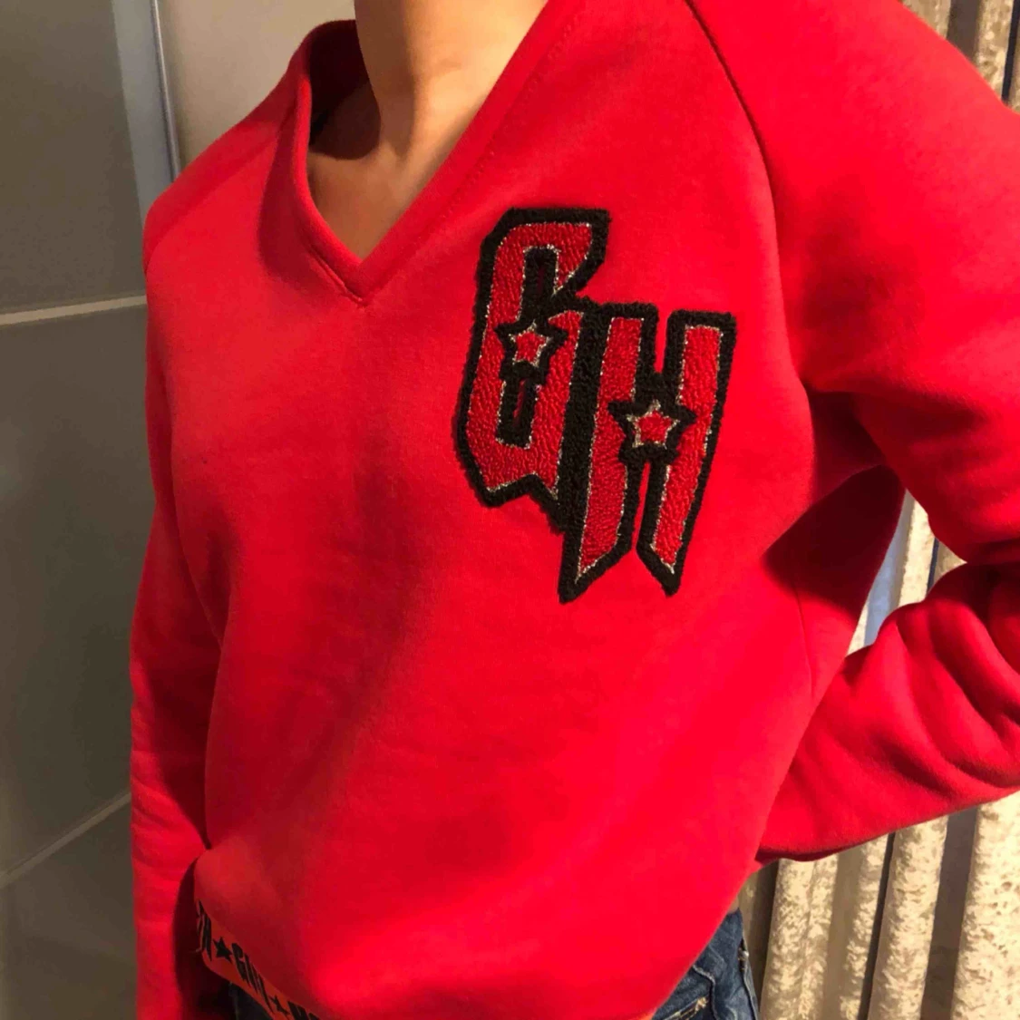 En röd tröja från Gigi Hadid x Tommy hilfiger som inte alls har kommit till användning tyvärr. Så i nyskick och köpt för 1200 kr!! 🤩