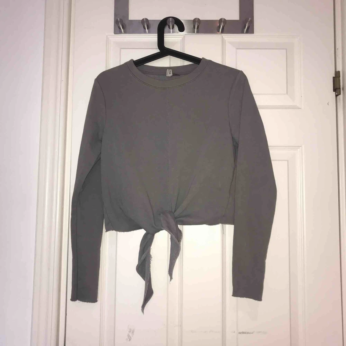 Grå tröja med knytning i fram från H&M i bra skick! Kan mötas upp i Uppsala eller så står köparen för frakten!:)