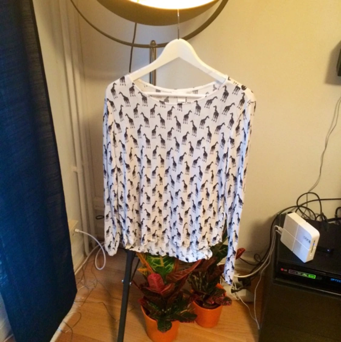 Vit tröja med giraffer. Skönt material. Använd 1 gång.