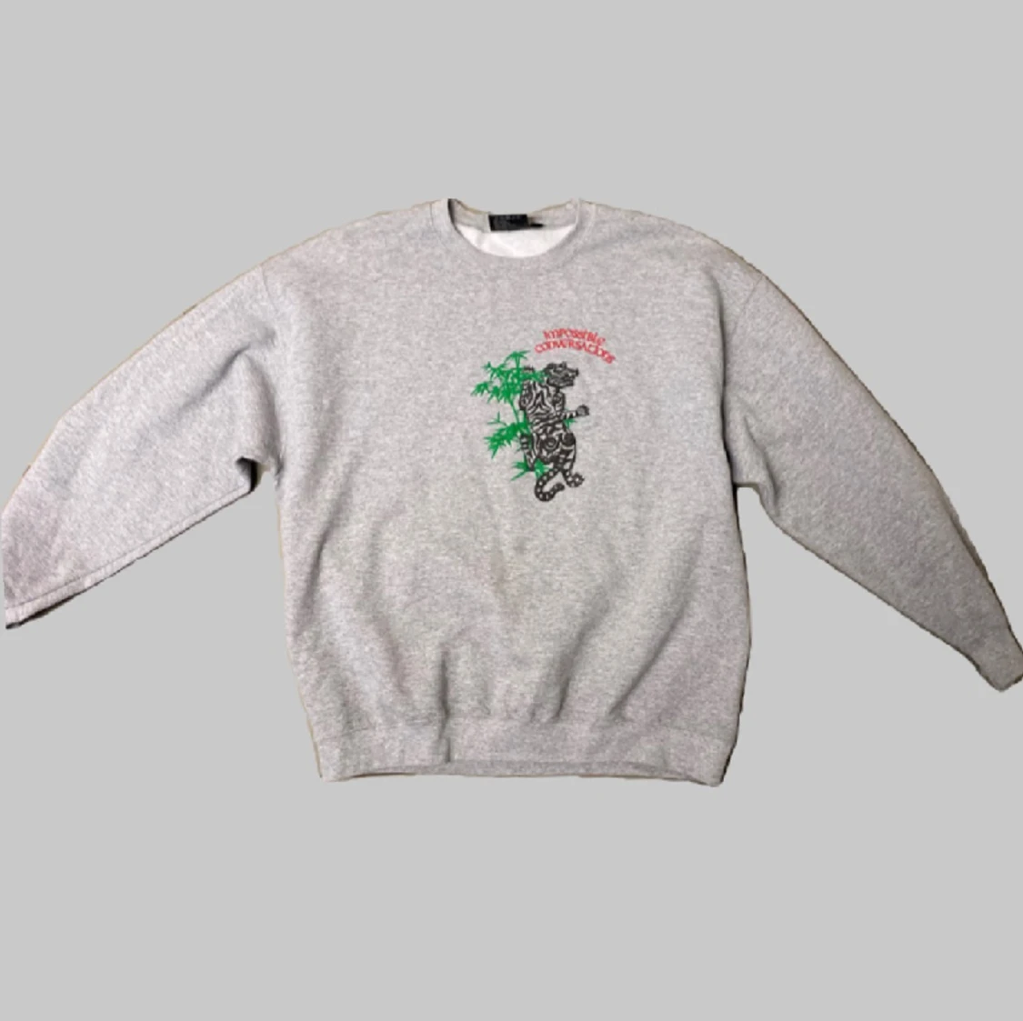 Riktigt soft collegetröja med tryck från Impossible Conversations. Köpt för 1499. Perfekt nu till vintern och att matcha med ett par feta jeans! Hör av er vid frågor/fler bilder!