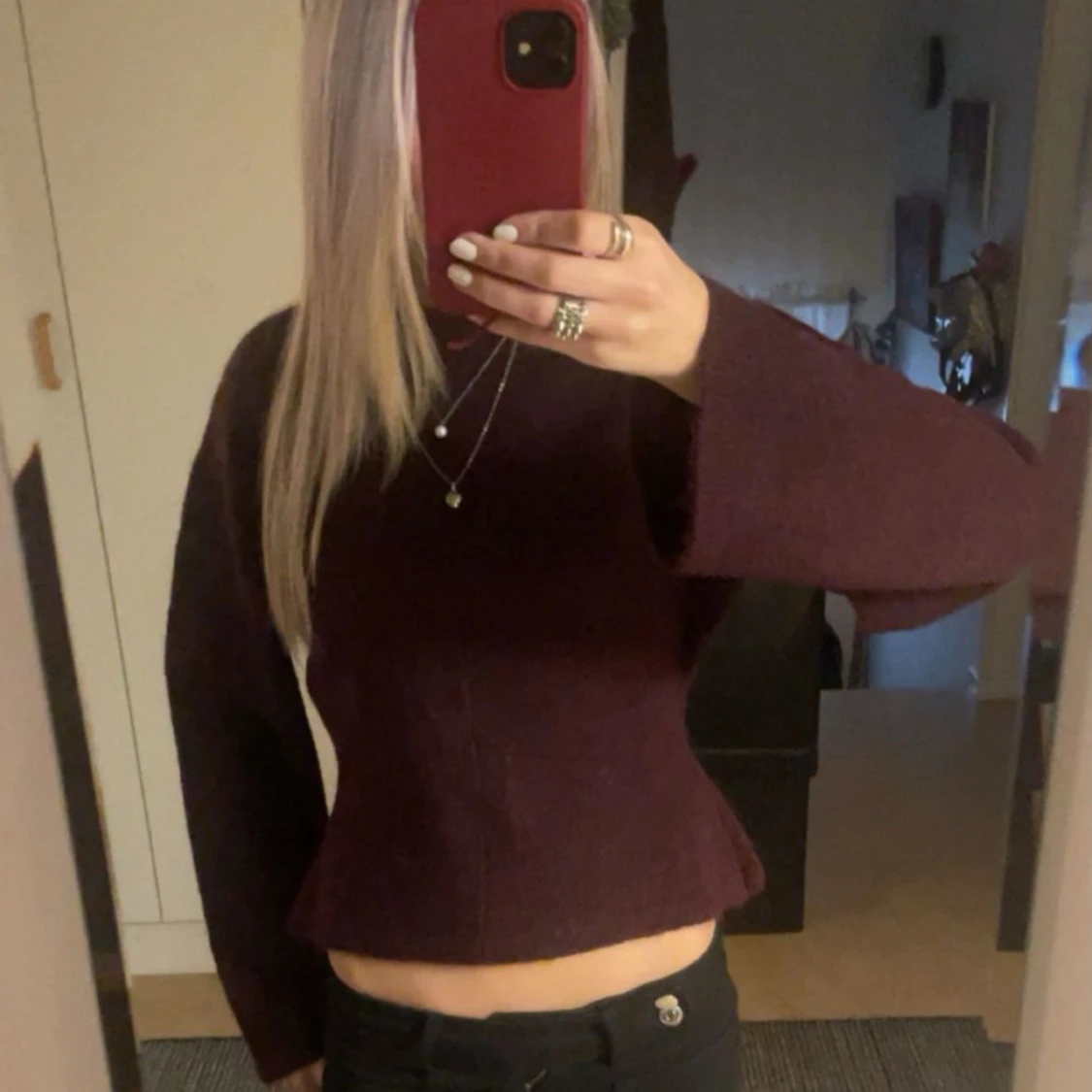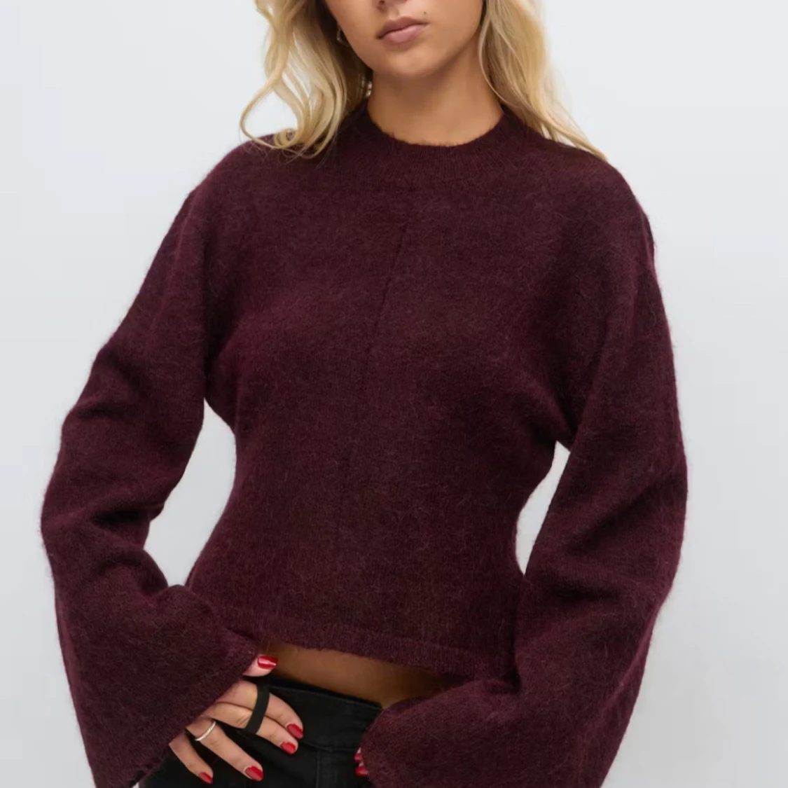 Superfin vinröd stickad tröja från Gina Tricot i croppad modell och figursydd❤️🔥❤️🔥 oanvänd!!