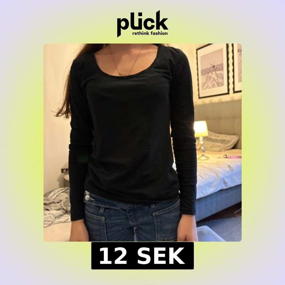 Enkel och stilren svart långärmad tröja från H&M i storlek S. Tröjan har rund halsringning och är gjord i mjuk bomull, perfekt att matcha med jeans eller kjol. Snygg baströja som funkar året runt.
