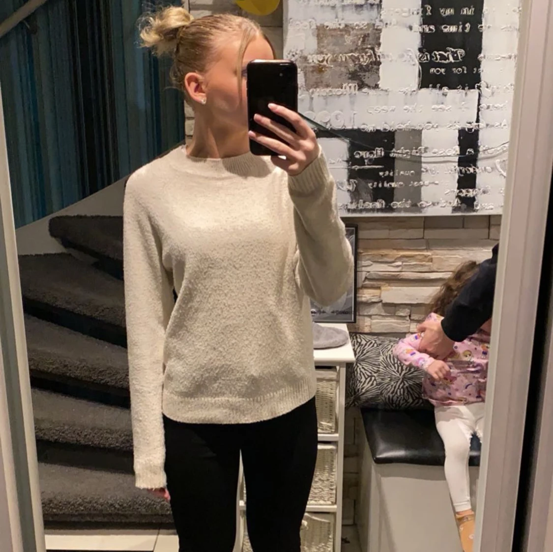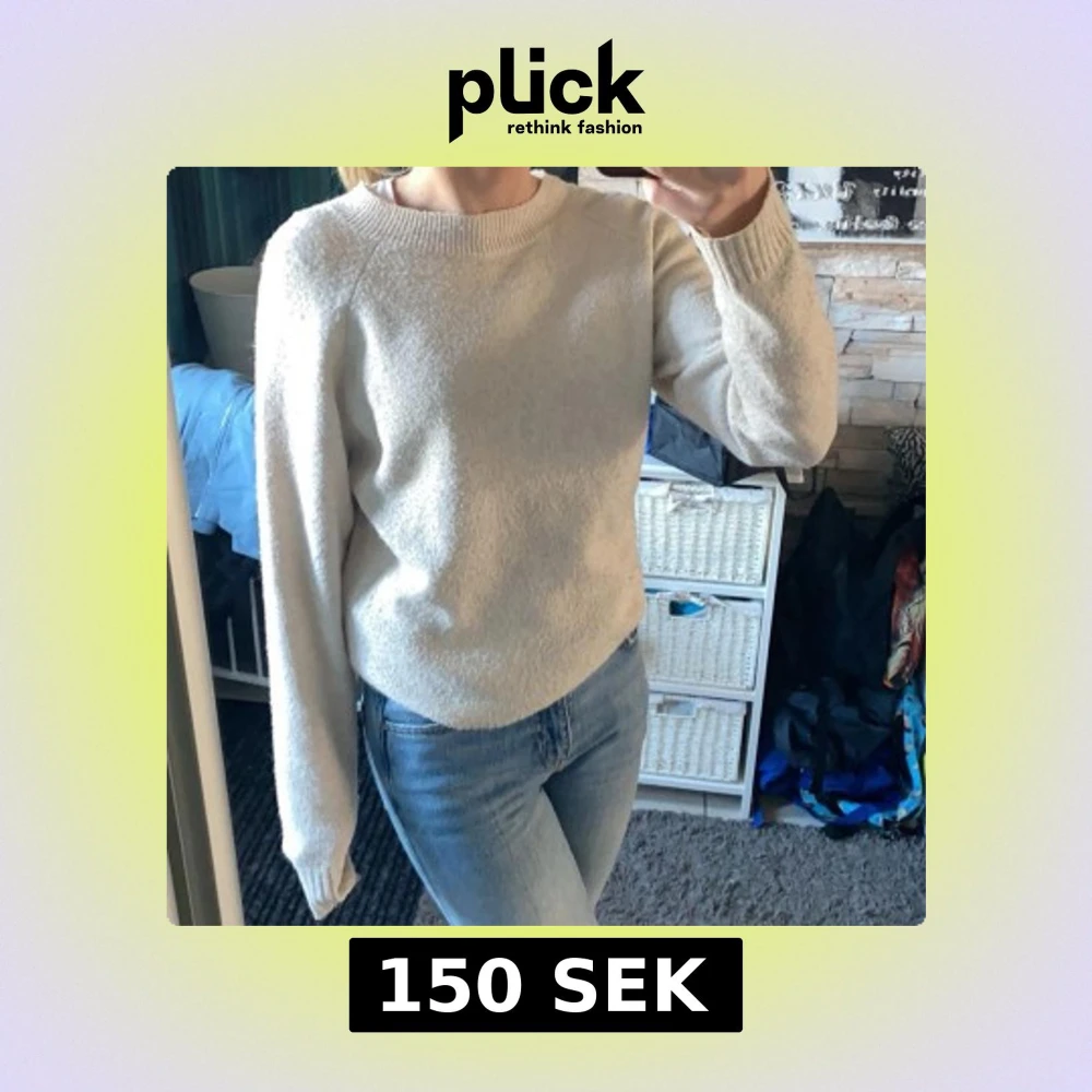 Säljer en mysig beige stickad tröja med rund hals och långa ärmar. Nopprig men fin!