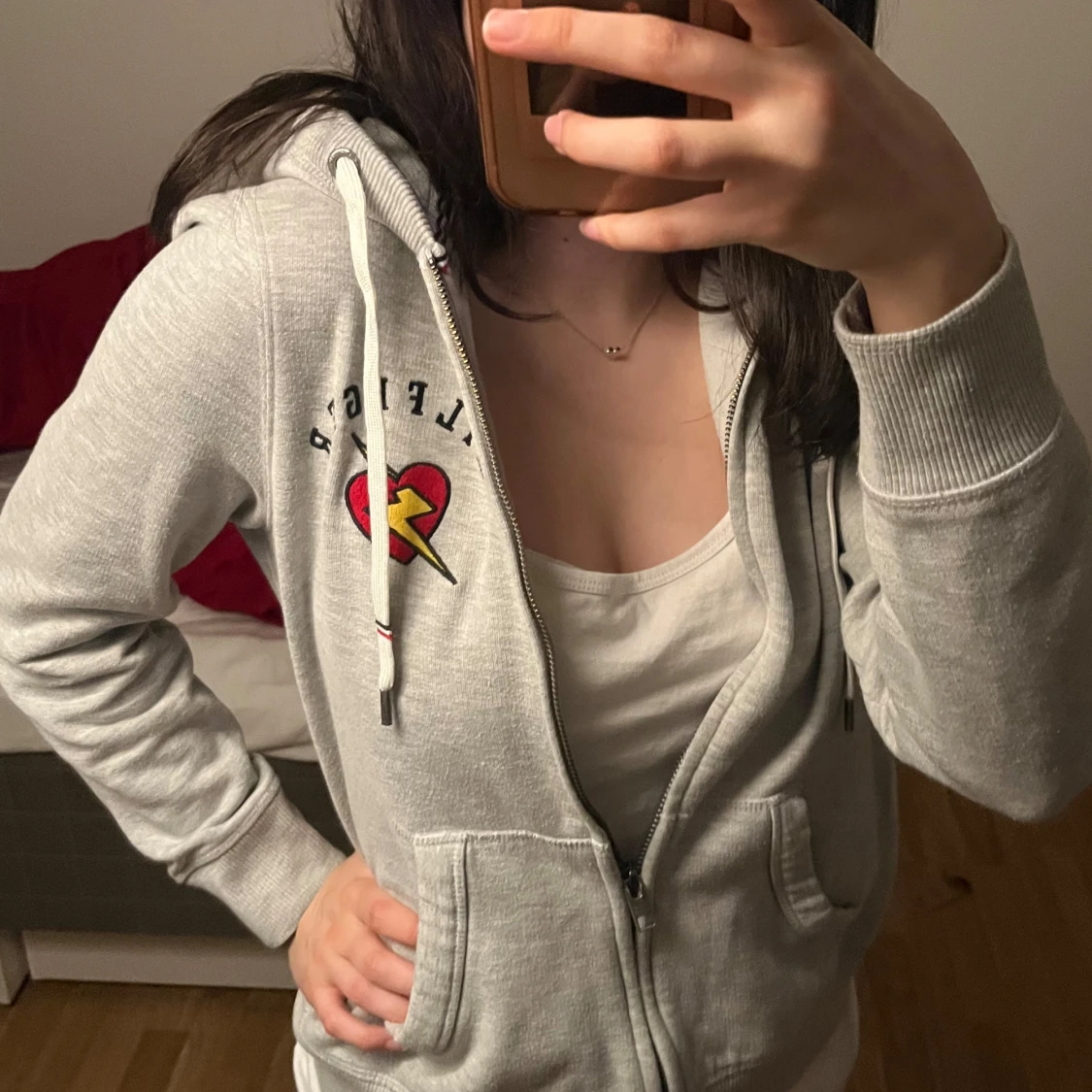 Så söt grå zipup från Tommy Hilfiger med dragkedja. Storleken är S men passar XXS-S💕 Har nu blivit lite nopprig o har ett svagt mörkare parti på ena armen (se bild) men utöver det toppen
