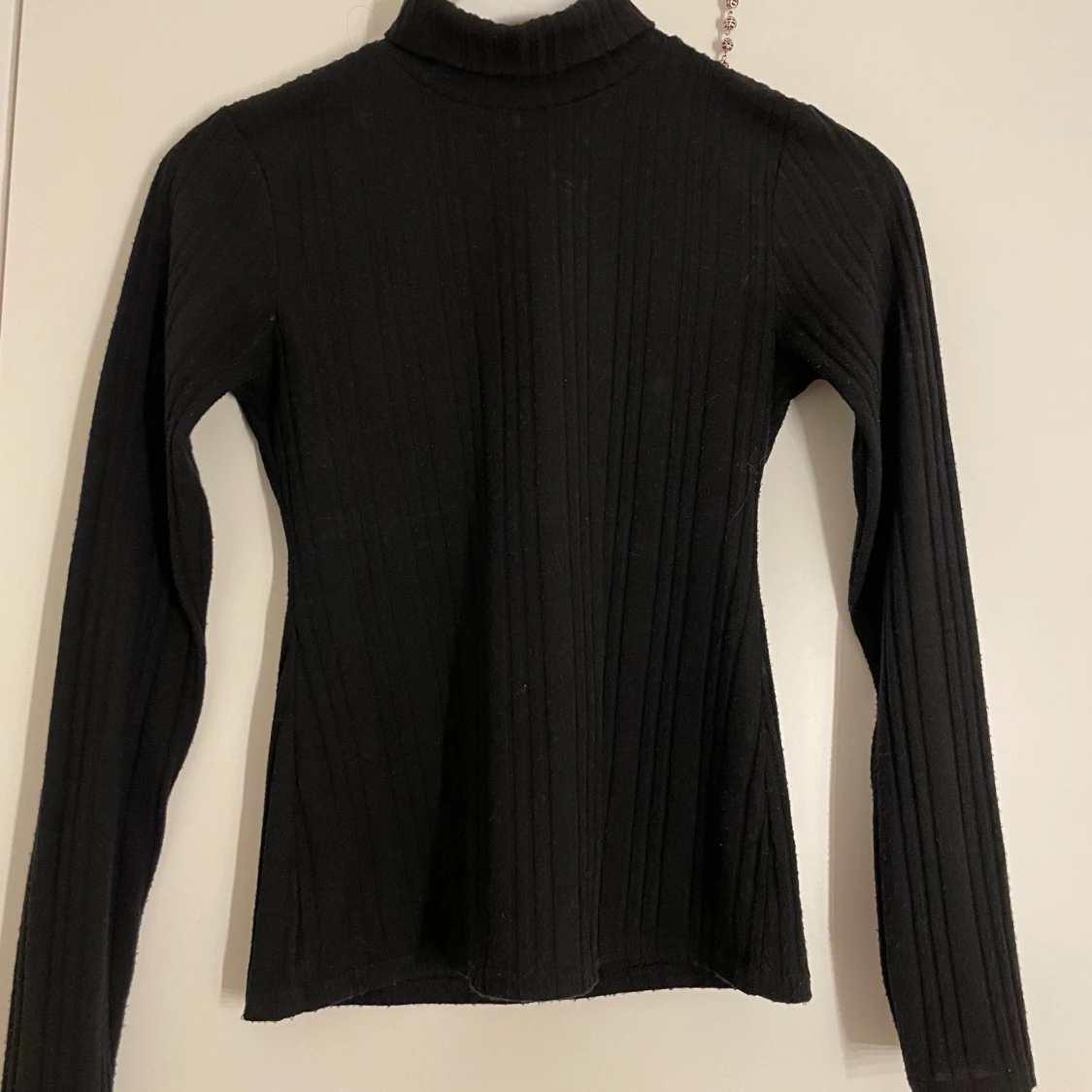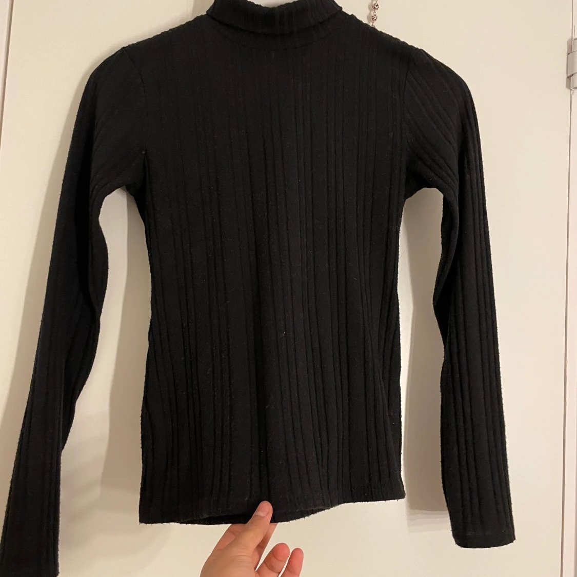 En svart turleneckđ€ den Ă€r i mellan tunt/tjockt material. Den Ă€r i storlek M men passar absolut inte i M, utan mer XS/Sđ€