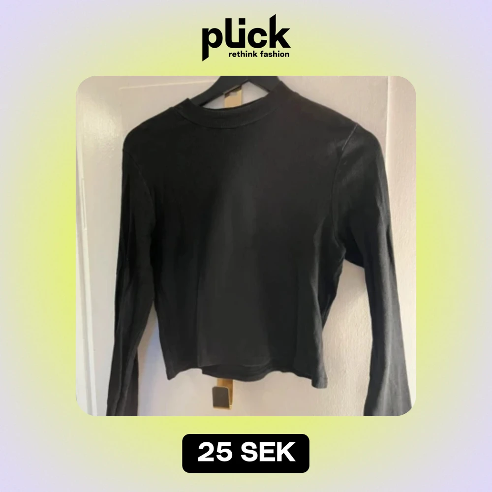 Säljer en svart vanlig kortare tröja. Ribbat mönster. Mindre i storlek