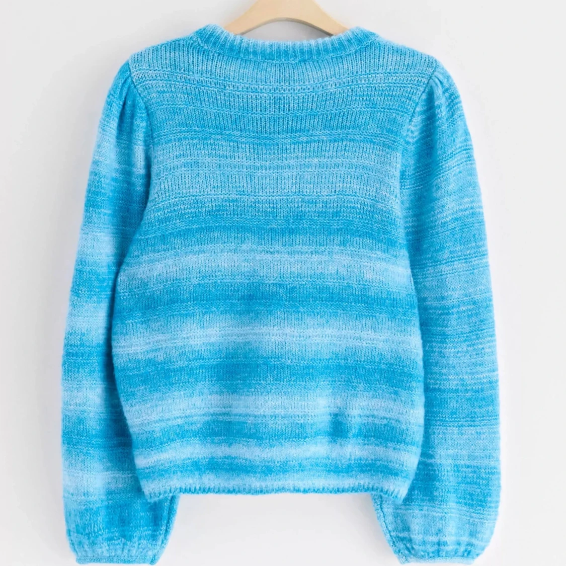 Säljer denna mysiga stickade tröjan med ”puffiga” ärmar som är perfekt för sommarn. Den är i storlek M men funkar lika bra som S, helt oanvänd. Nypris: 499 pris kan diskuteras!