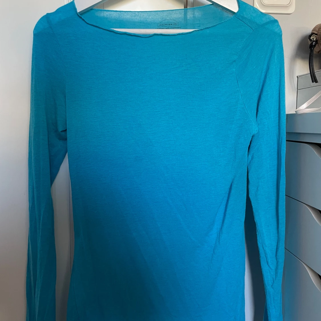 Säljer en nästan ny turkos långärmad tröja från Intimissimi. Tröjan är ultralätt och innehåller kashmir, vilket gör den extra mjuk och bekväm. Perfekt för lager-på-lager eller som den är. Passar bra till både jeans och kjol. 💙