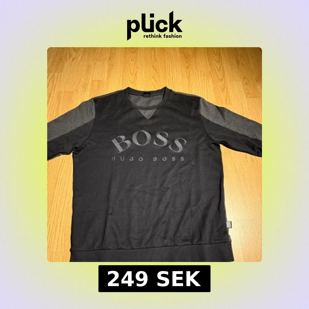 Säljer två snygga långärmade tröjor från Hugo Boss. Ena är svart med grå detaljer på ärmarna och stor BOSS-logga framtill, den andra är marinblå med vit och blå BOSS-tryck. Båda har rund hals och är perfekta för en stilren vardagslook.