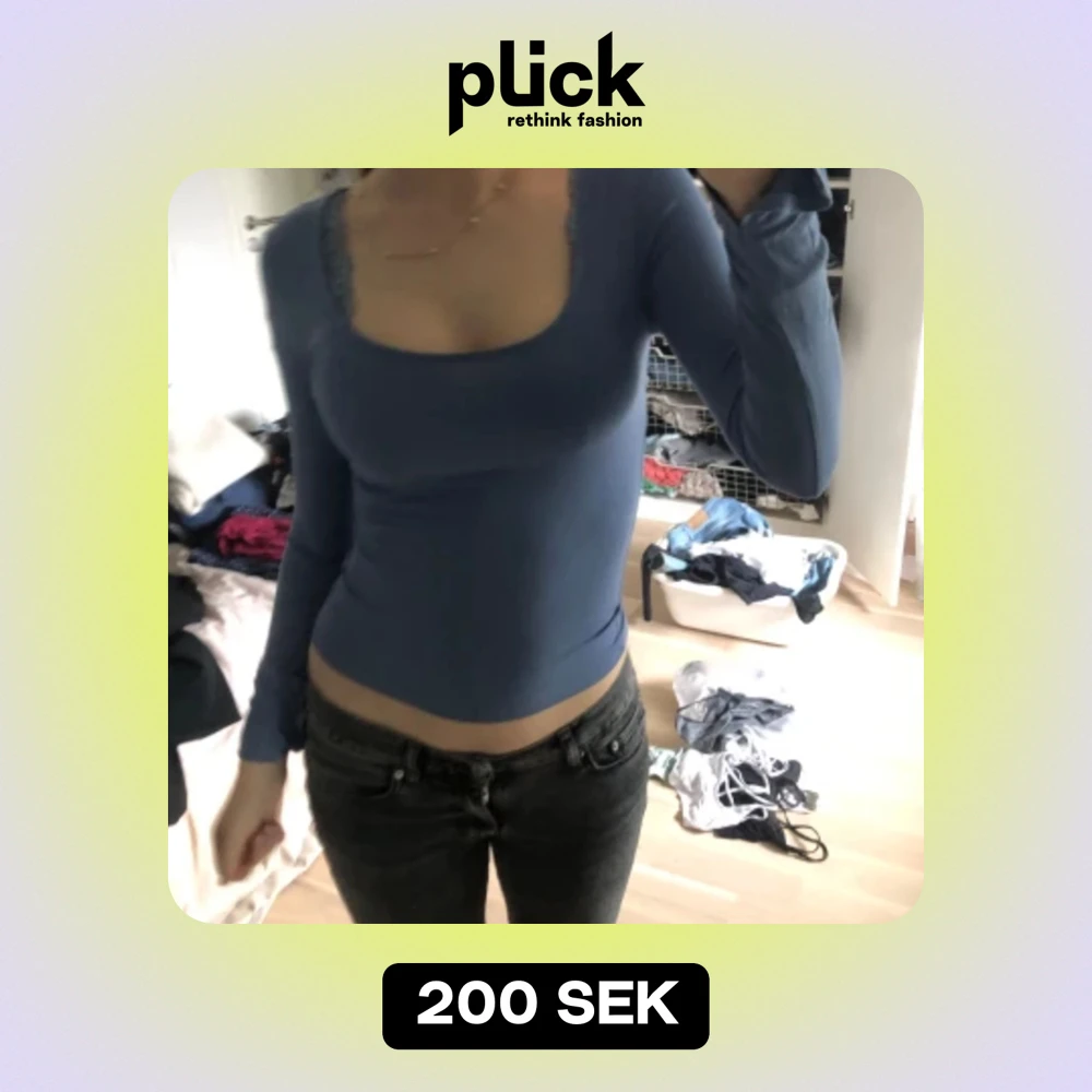 Jättesnygg blå tröja, tunnt material, från Gina Tricot, u-ringd och utsvängda armar. Går även att använda bakochfram så att den blir låg i ryggen! Storlek Xs men passar även S