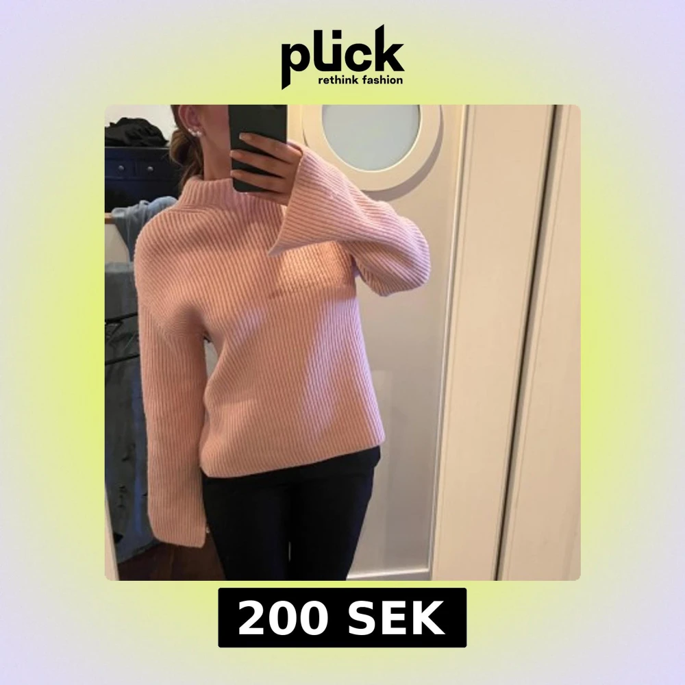Mysig rosa stickad polotröja med ribbad struktur. Perfekt för kyliga dagar med sin höga krage och armar med slits
