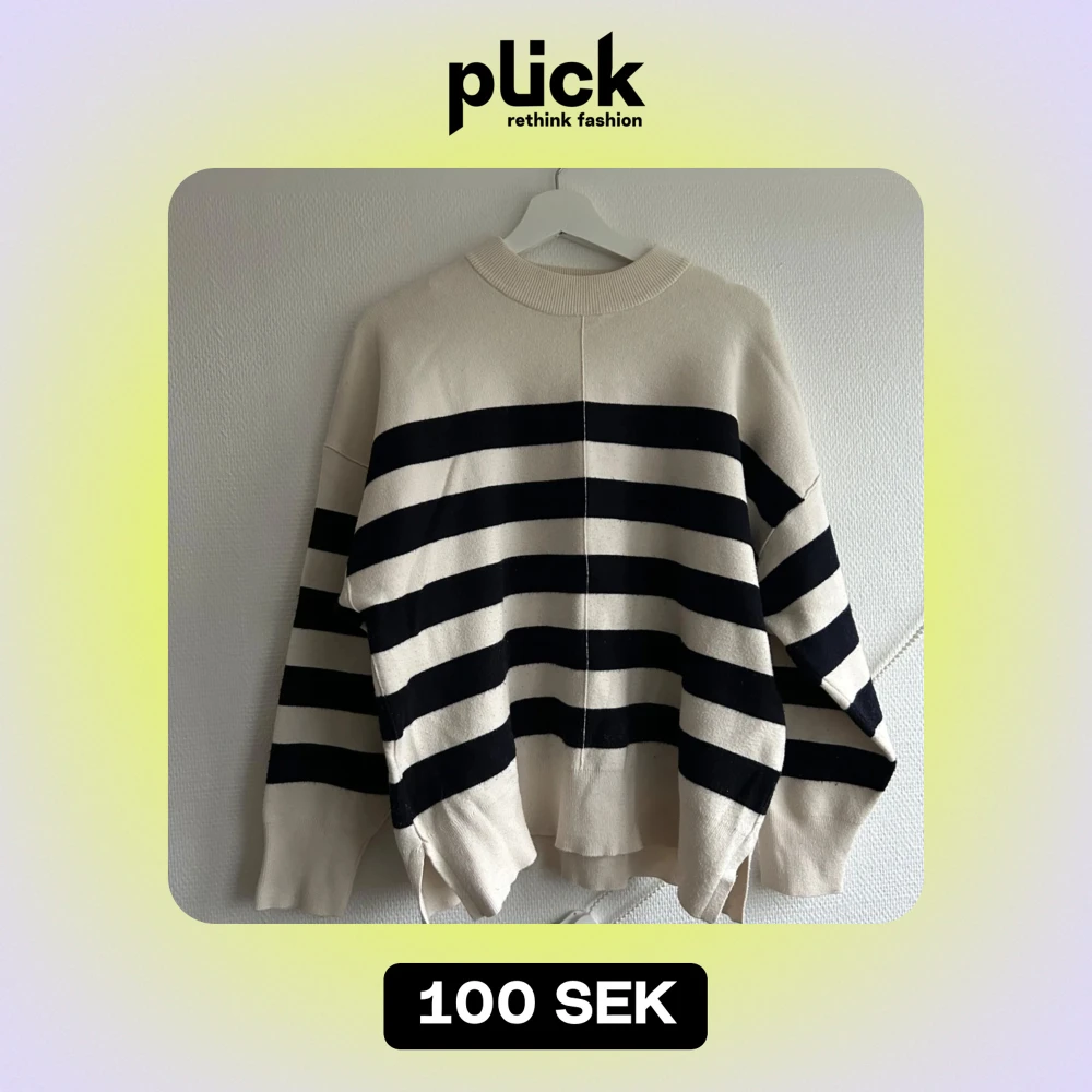 Säljer en superfin randig tröja i marinblå och beige. Hör av dig vid frågor om mått osv, storlek M från Zara💙