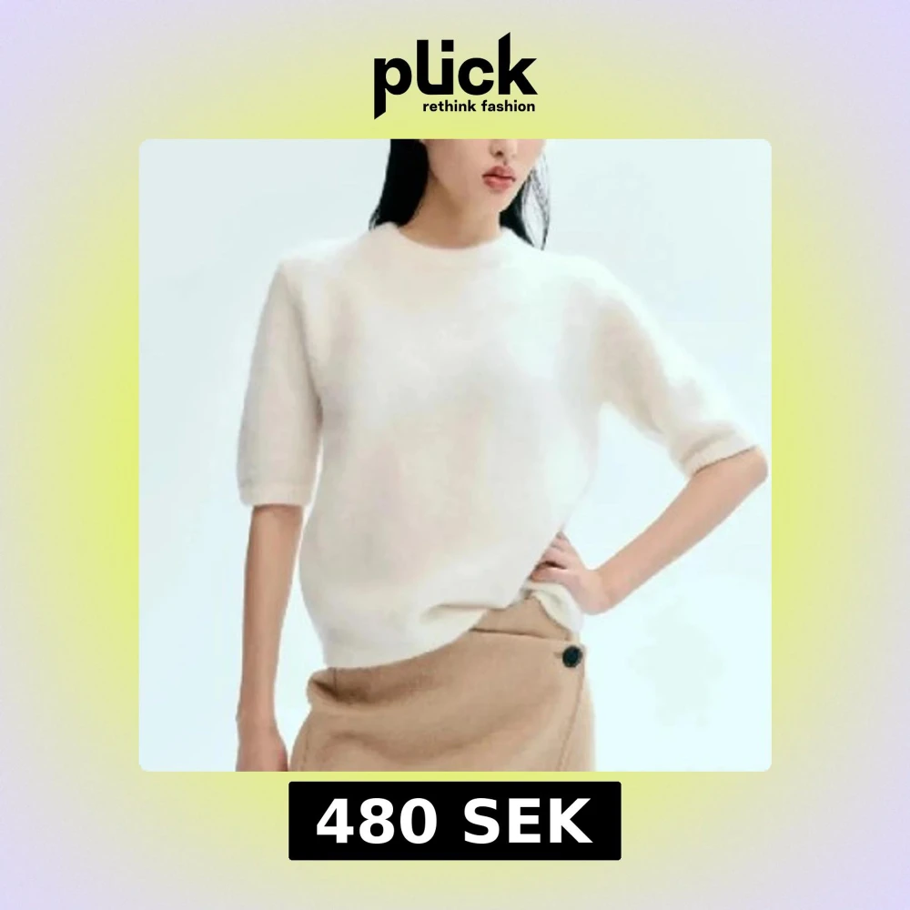 Säljer en supermysig vit tröja från H&M i mohair-blandning. Tröjan har korta ärmar och en rund halsringning. 🤍🤍