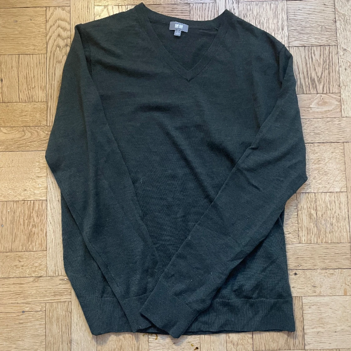 Stickad tröja i ull- och merinoblandning. Riktigt snyggt till en vit skjorta! Hör av er vid frågor