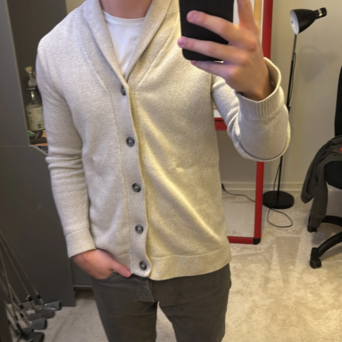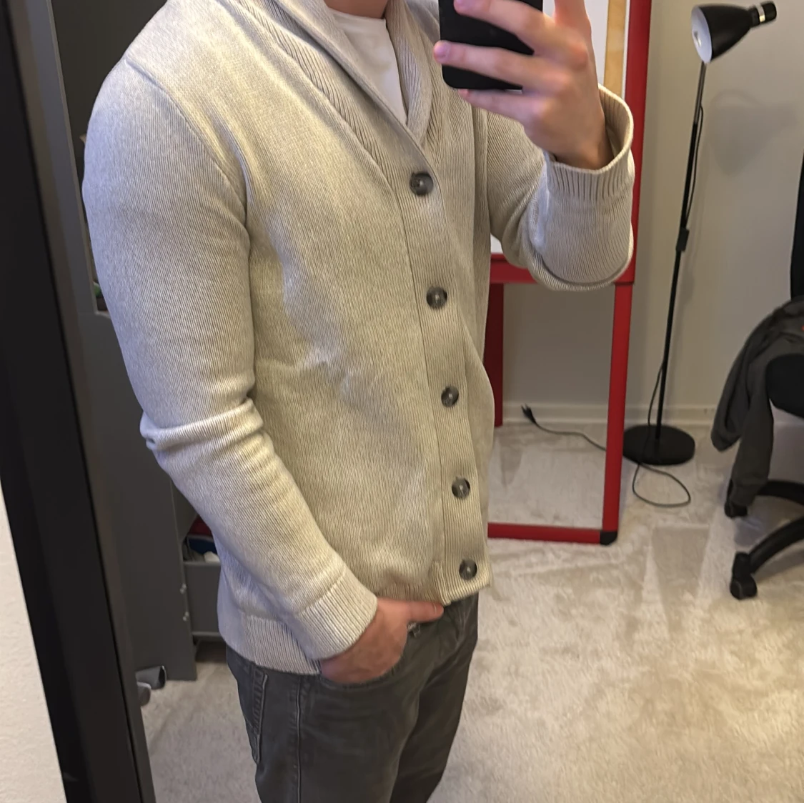 Säljer en stilren beige kofta med knappar och en bred krage. Perfekt för lager-på-lager och passar till både vardag och mer uppklädda tillfällen. Koftan har långa ärmar och en mjuk, bekväm passform. Passar om du är ca 175cm. Skriv vid funderingar!