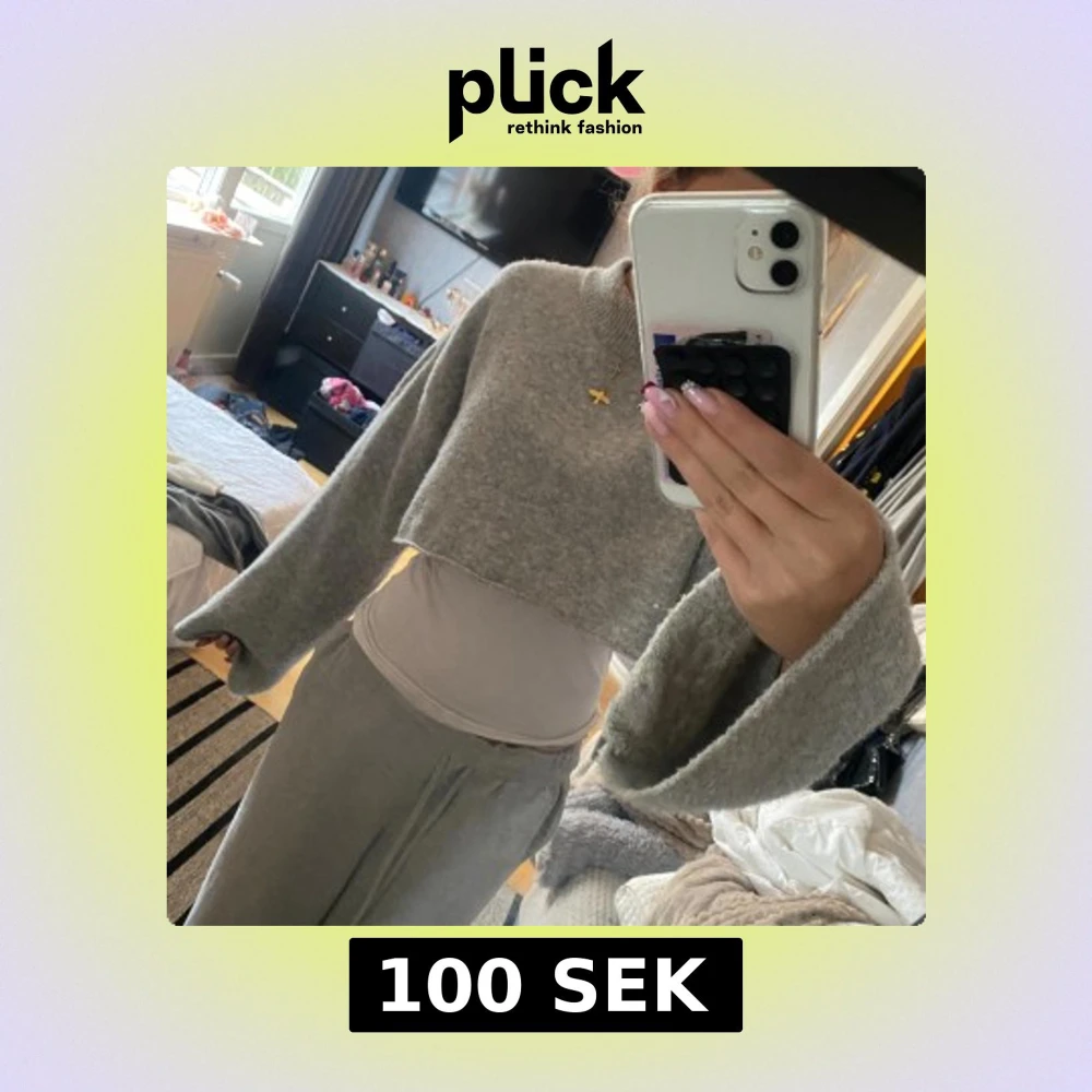 Superfin grå stickad tröja från Monki i storlek S. Den är croppad och har en mysig, oversized passform med långa ärmar. Perfekt för höst och vinter när du vill vara både stilren och bekväm. 🧶✨