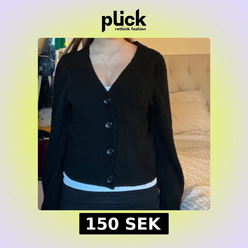 Säljer en stilren svart kofta från & Other Stories. Den har en v-ringad design med knappar framtill och långa ärmar. Perfekt för att hålla sig varm och snygg under kyligare dagar. Tröjan är nopprig men det är inget man tänker på.💕