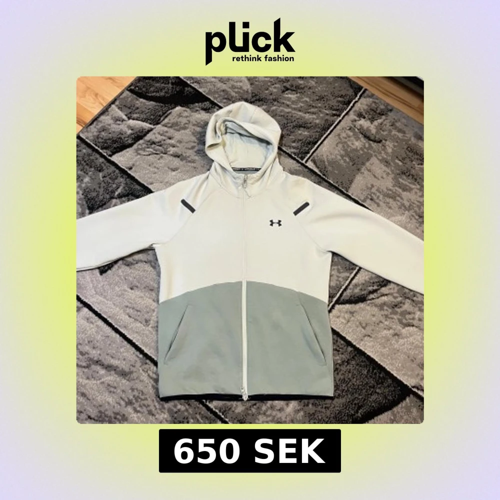 Snygg hoodie från Under Armour i två nyanser av ljusgrått. Tröjan har hel dragkedja, huva och två fickor framtill. Perfekt för träning eller chill, med diskret logga på bröstet och stilren design.