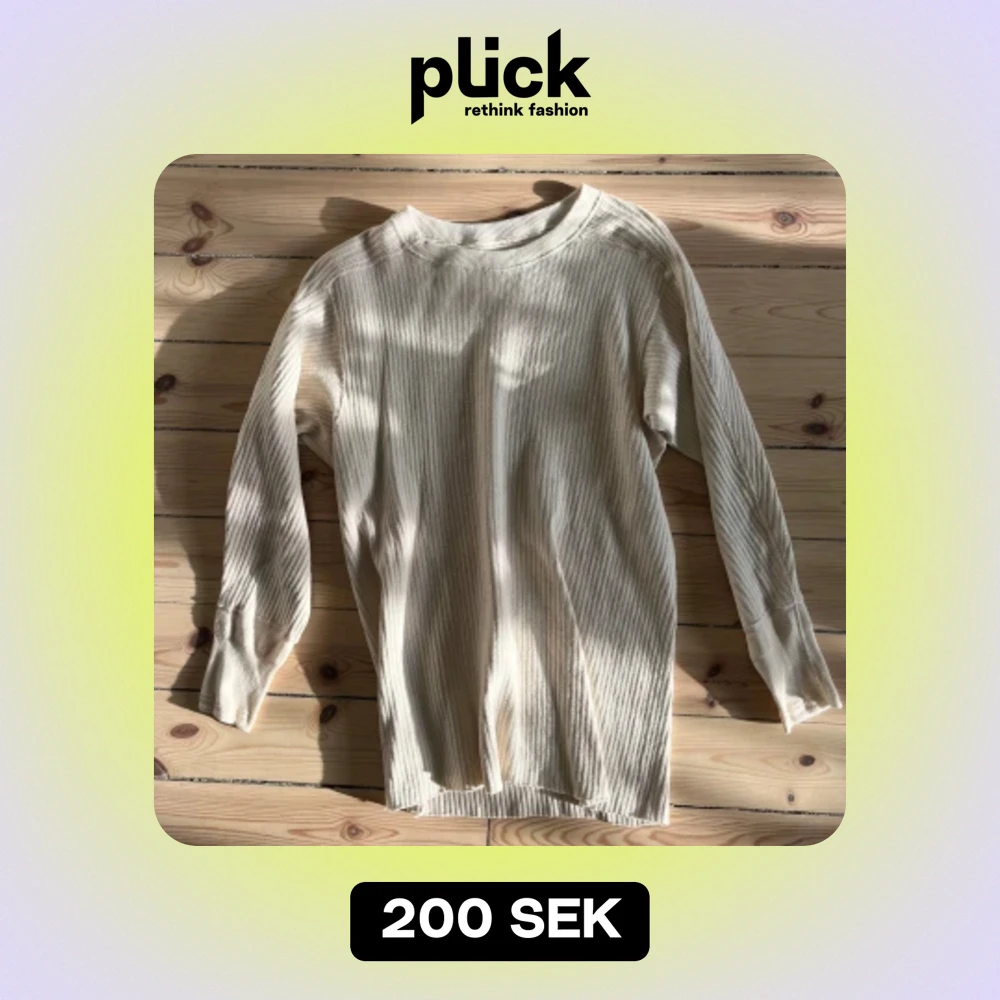 En undertröja, ribbad i bomull, eventuellt lite ull i. Vit beige färg. Passar M/L