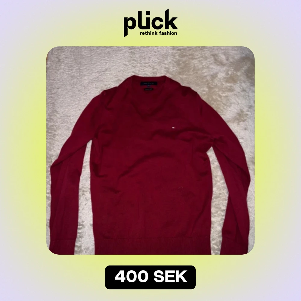 Tommy Hilfiger Tröja Röd (V-neck). Knappt använd. Passar perfekt med skjorta under. Storlek S. Bara och skriva för fler frågor eller bilder!