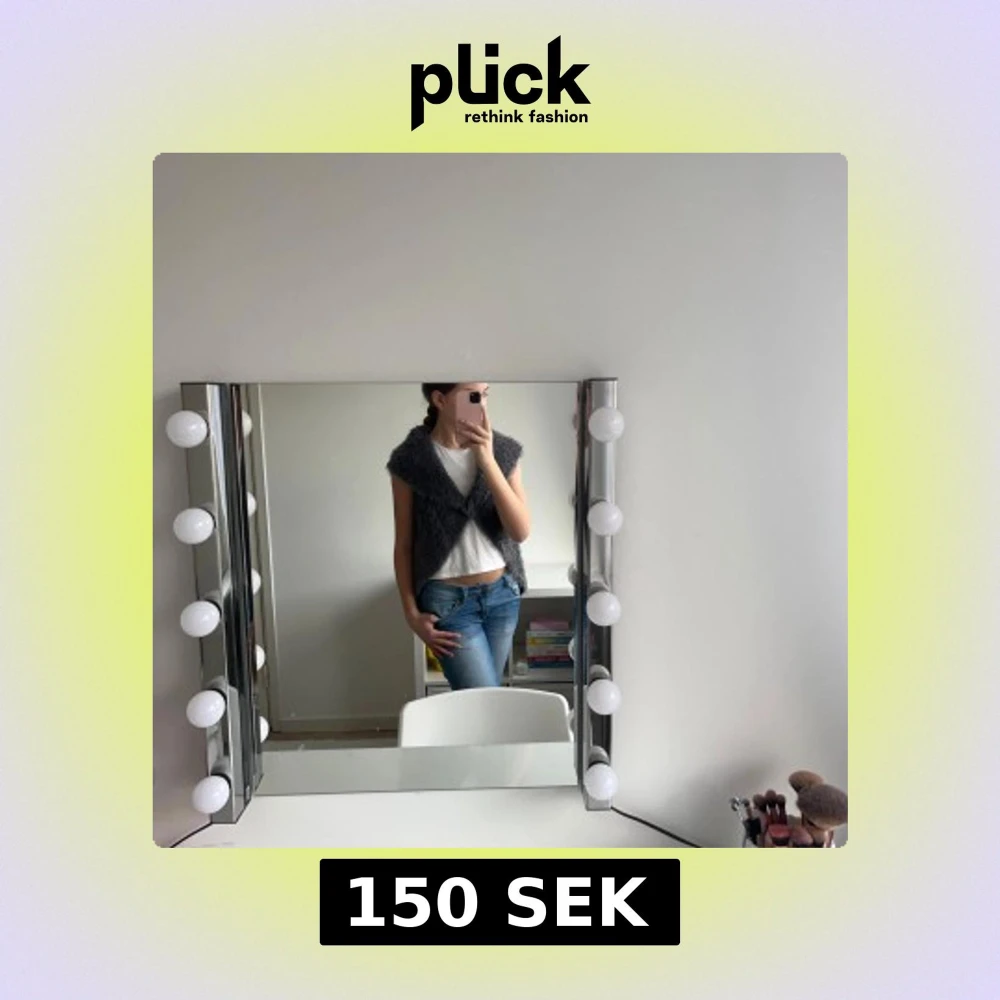 Säljer en snygg grå pälsväst med en unik virkad detalj på ryggen. Västen är perfekt för att ge din outfit en extra touch. Den är ärmlös och har en mjuk och fluffig känsla.