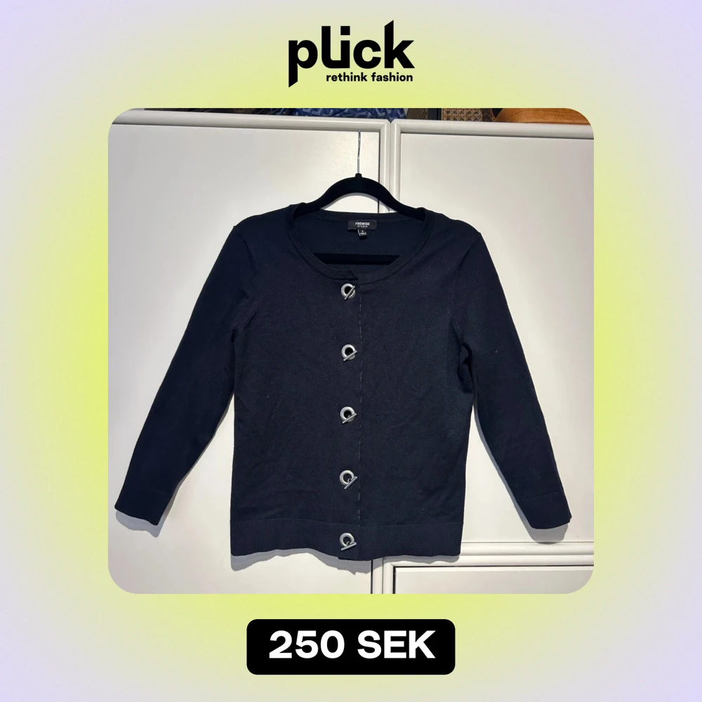 Säljer supercool mörkblå finstickad kofta i storlek S. Den har unika knappar som ger en cool touch och är perfekt för både vardag och fest. Koftan är i mycket bra skick och har långa ärmar. Perfekt året runt!