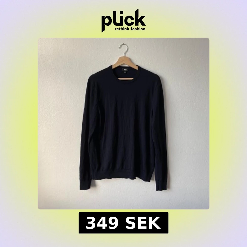 Säljer en stilren svart tröja från Uniqlo i storlek L. Tröjan är tillverkad i 100% ull och har långa ärmar. Perfekt för en minimalistisk look.