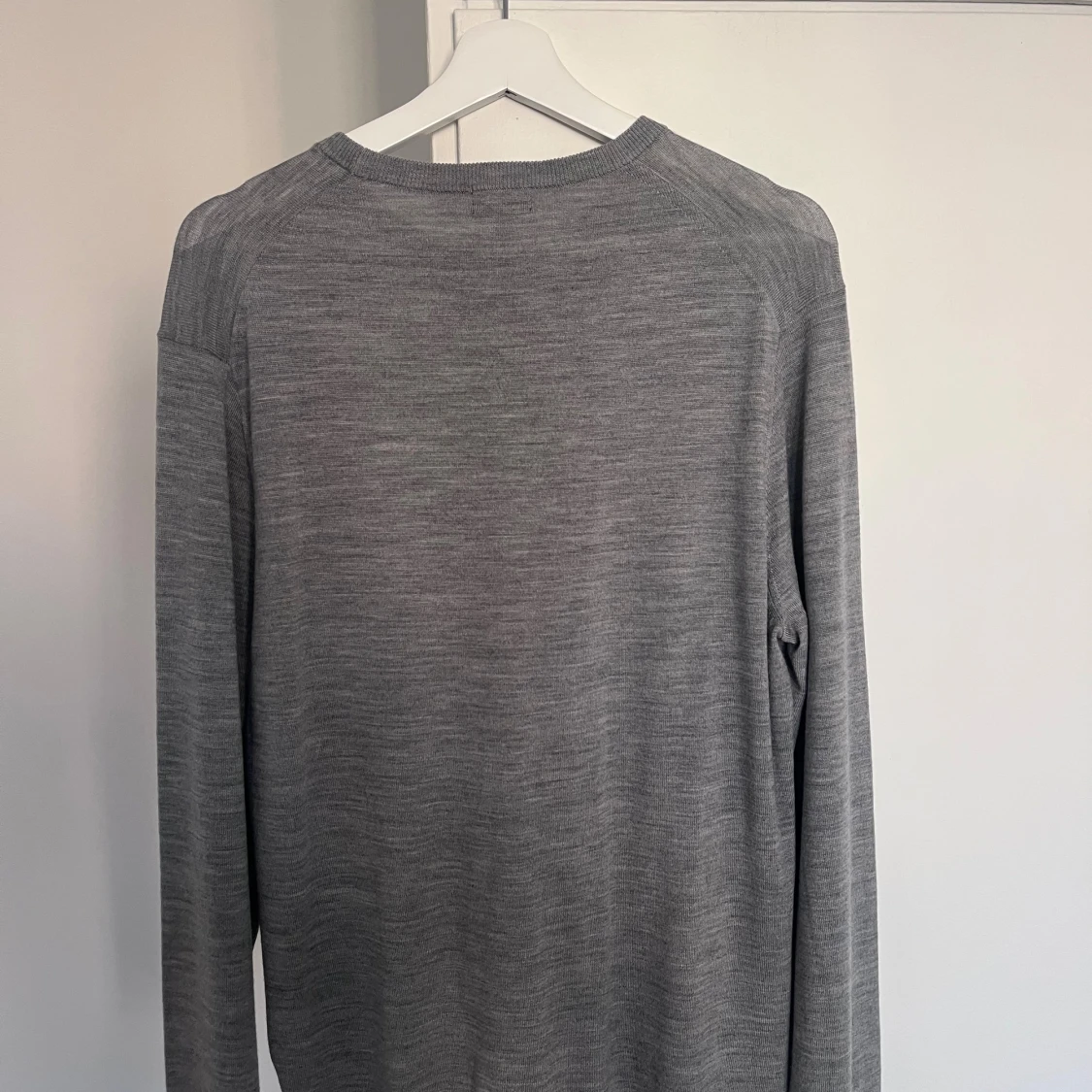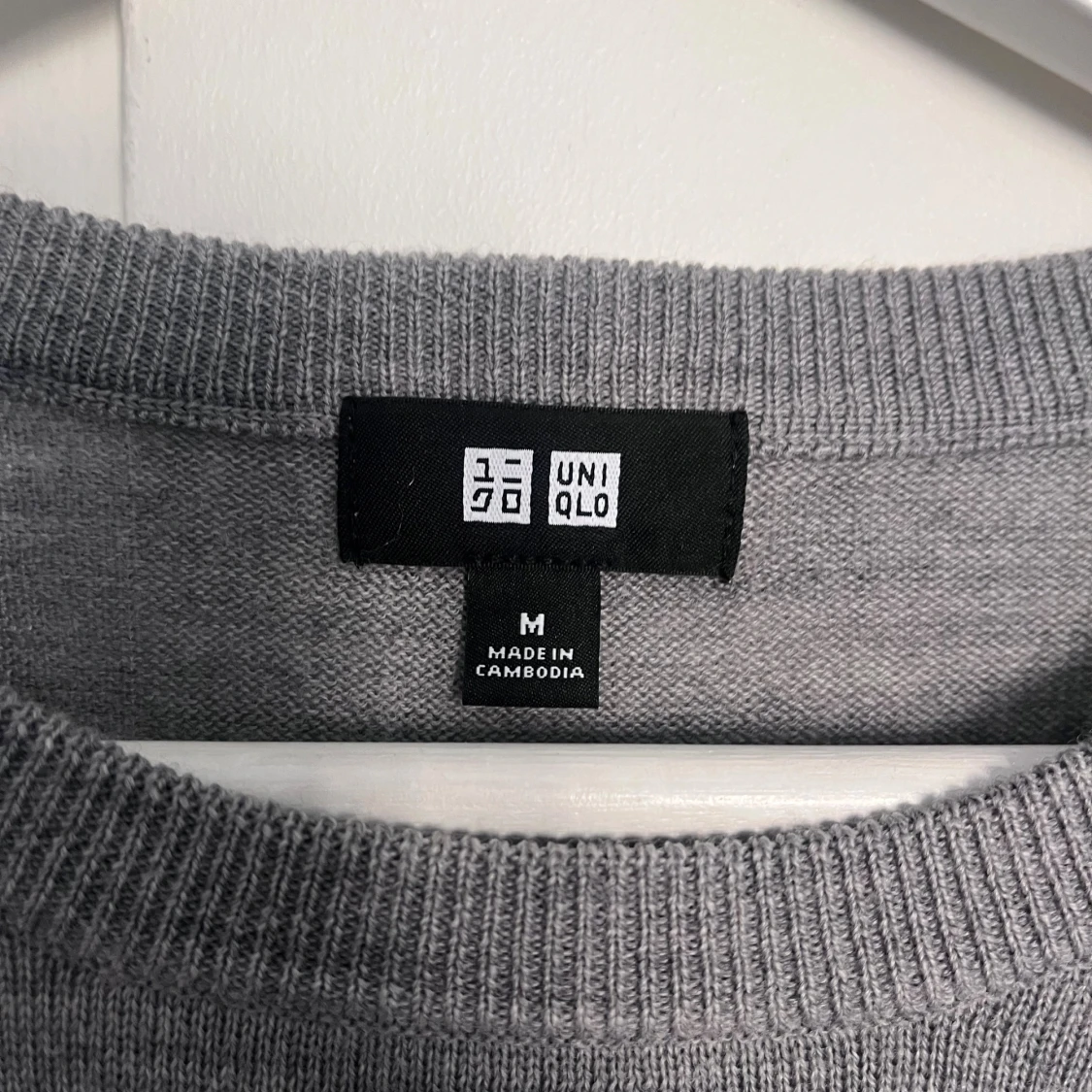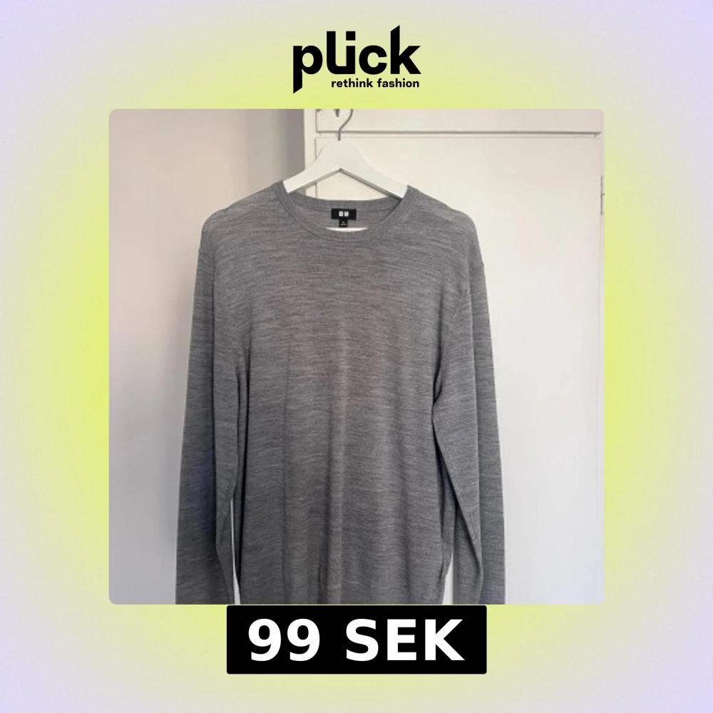 En stilren grå stickad tröja från Uniqlo i storlek M. Tröjan har rund halsringning, lång ärm och är tillverkad i ett mjukt material som passar perfekt till lager-på-lager. Enkel och clean look som funkar till allt.