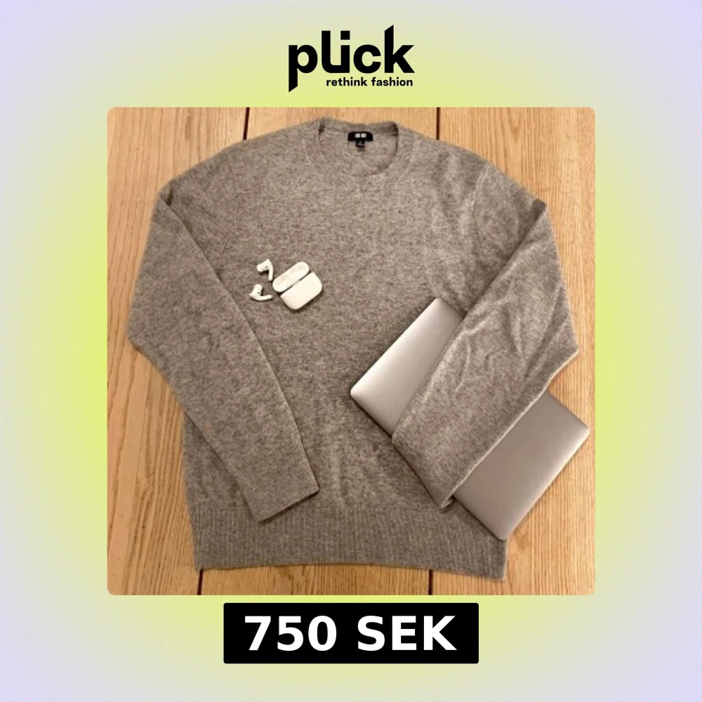 Säljer en stilren grå kashmirtröja från Uniqlo. Tröjan har rund halsringning och långa ärmar med ribbade muddar. Perfekt för dig som gillar en klassisk och mjuk tröja i högkvalitativt material.