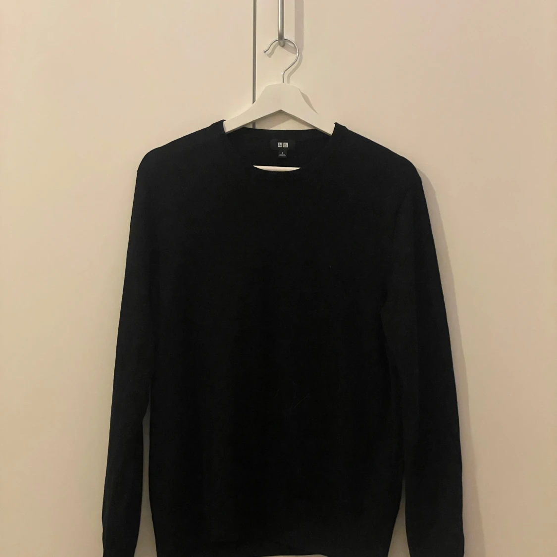Säljer en stilren svart tröja från Uniqlo. Tröjan har en klassisk design med långa ärmar och rund halsringning. Perfekt för en minimalistisk look.