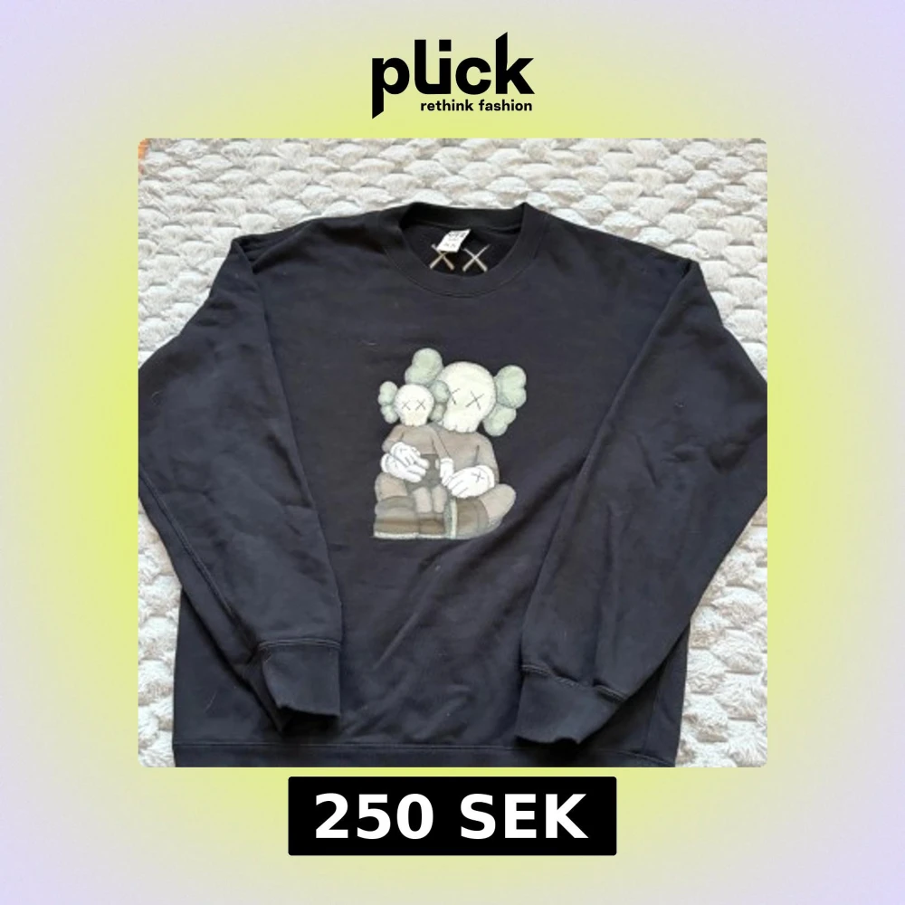 Svart sweatshirt från Uniqlo x KAWS med broderat motiv av två KAWS-figurer på bröstet och broderade XX-detaljer i nacken. Tröjan har rund hals, långa ärmar och är gjord i mjuk bomull. Perfekt för dig som gillar streetwear och coola prints.