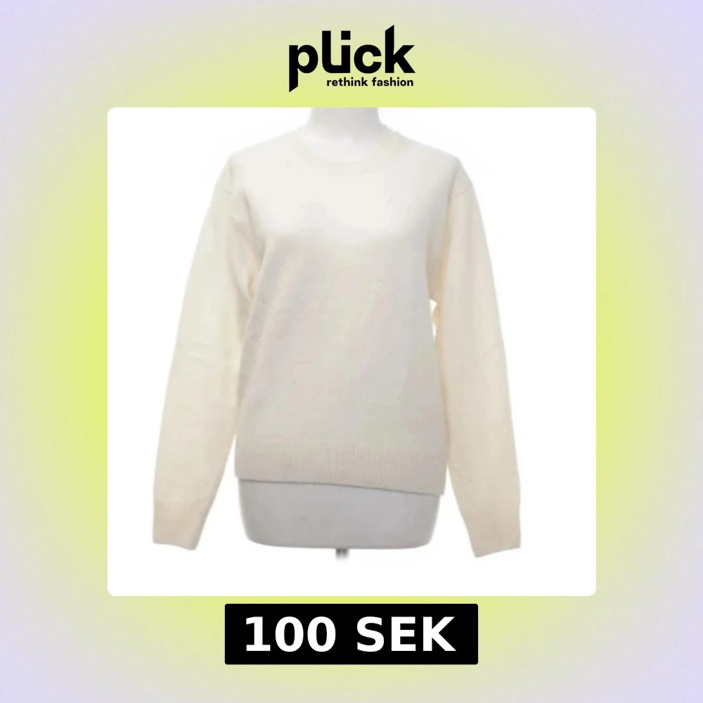 Säljer en klassisk vit stickad tröja med rund hals och långa ärmar. Perfekt för kyliga dagar och enkel att matcha med olika outfits. Tröjan har ribbstickade muddar vid ärmslut och nederkant.