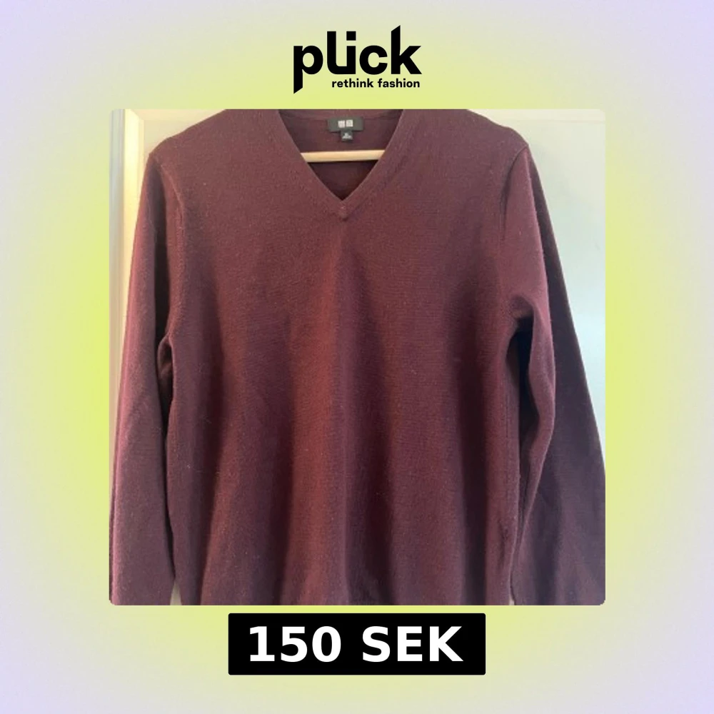 Vinröd v-ringad tröja från Uniqlo i mjukt material. Långärmad och enkel design som passar perfekt till lager-på-lager. Snygg att styla med skjorta under eller bara som den är.