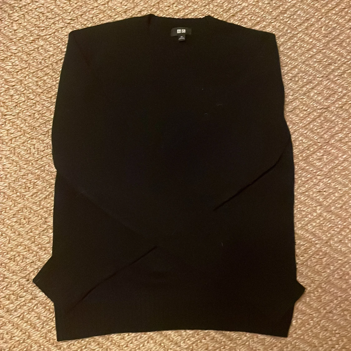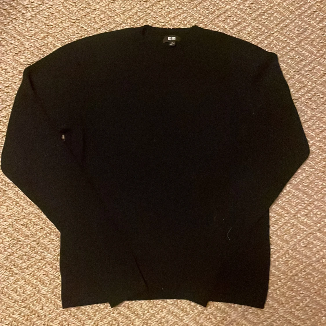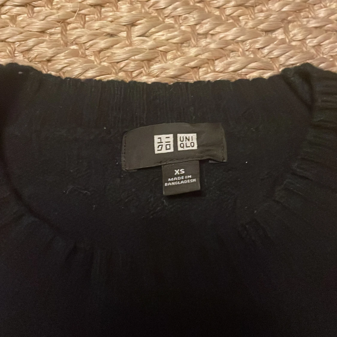 En klassisk svart stickad tröja från Uniqlo i storlek XS. Tröjan har rund halsringning och långa ärmar, perfekt för lager-på-lager. Enkel och stilren design som funkar till allt. Materialet är mjukt och bekvämt.